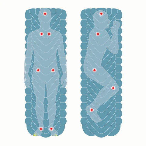 Tecnología Body Mapping: Nuestro diseño patentado en forma de V proporciona soporte y confort independientemente de cómo duerma: de lado, boca abajo o boca arriba.