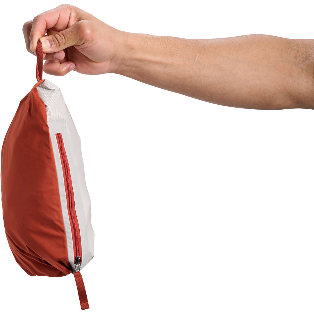 Dos bolsillos con cremallera ofrecen espacio para artículos más pequeños, mientras que la cremallera frontal recubierta repelente al agua mantiene la humedad fuera de manera confiable. Cuando no está en uso, la chaqueta se puede guardar en su bolsillo derecho y transportar fácilmente gracias a un lazo de mosquetón. Los puños ajustables y el dobladillo ajustable garantizan un ajuste preciso.